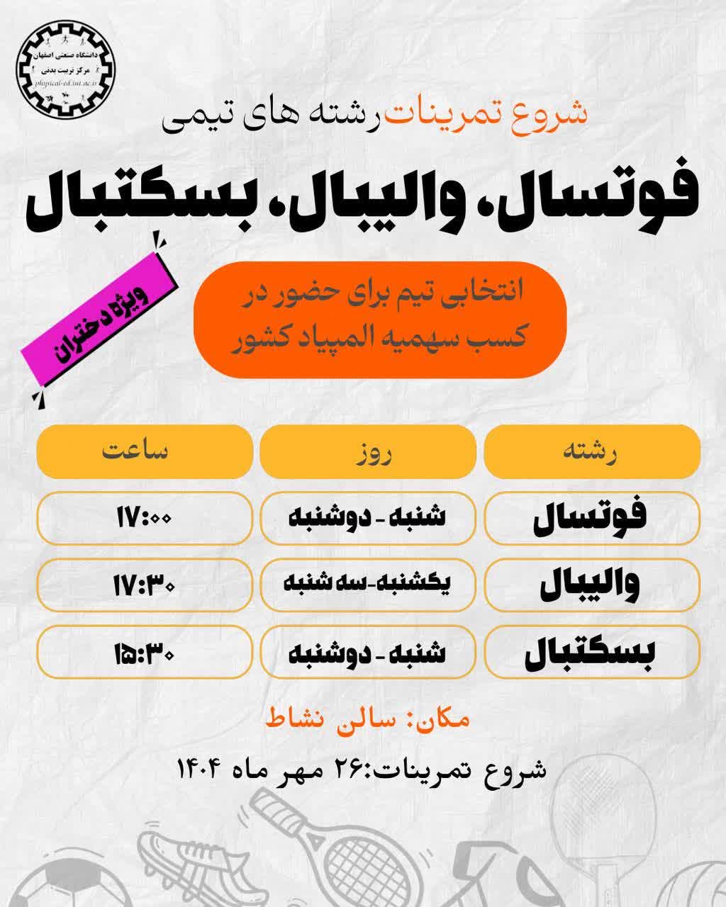 آغاز تمرینات تیم های فوتسال ، والیبال و بسکتبال دانشجویان دختر