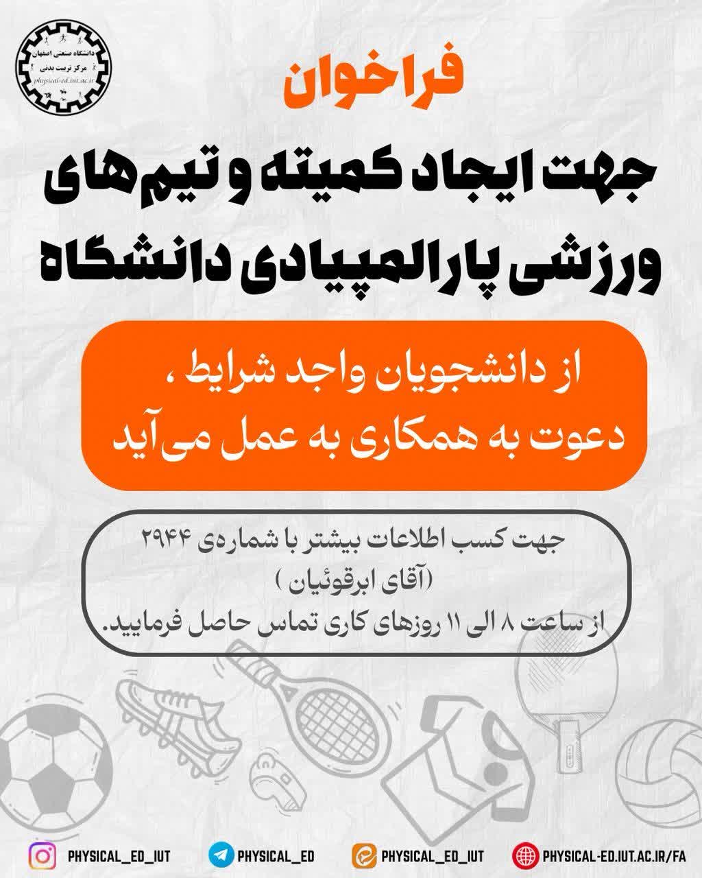 ایجاد کمیته و تیم های ورزشی پارالمپیاد