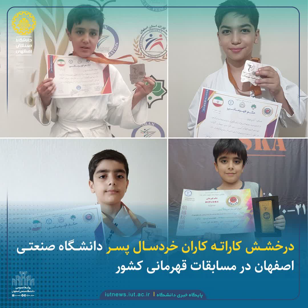 کاراته کاران خردسال پسر فرزندان اعضای هیات علمی دانشگاه صنعتی اصفهان با درخشش در مسابقات قهرمانی کاراته داینامیک شوتوکاپ کشور، موفق به کسب یک مدال طلا و 3 برنز شدند.