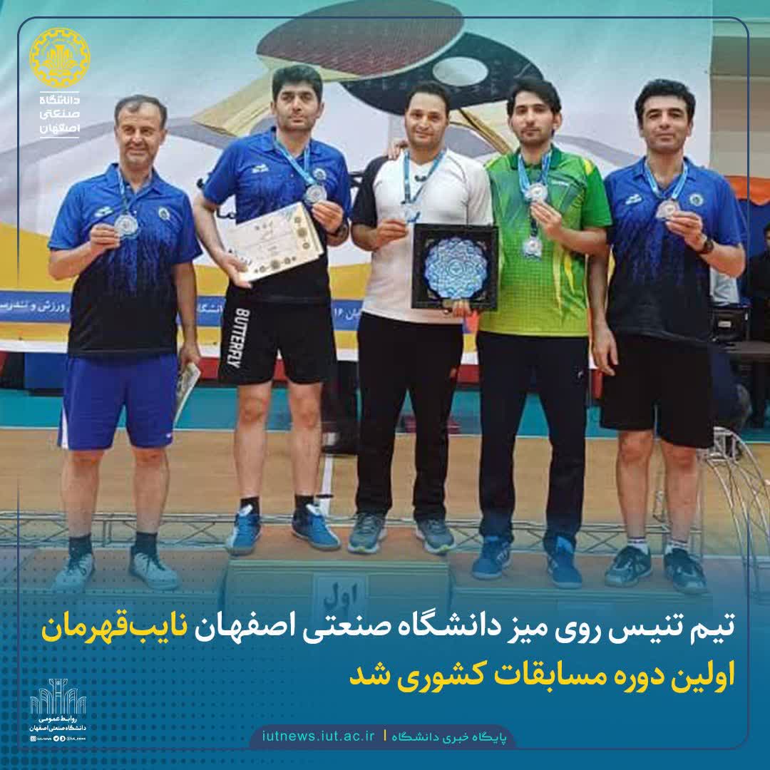 تیم تنیس روی میز آقایان دانشگاه صنعتی اصفهان در اولین دوره مسابقات تنیس روی میز کارکنان و اعضای هیأت علمی دانشگاهها و مؤسسات آموزش عالی کشور، عنوان نایبقهرمانی تیمی و انفرادی را به دست آورد.