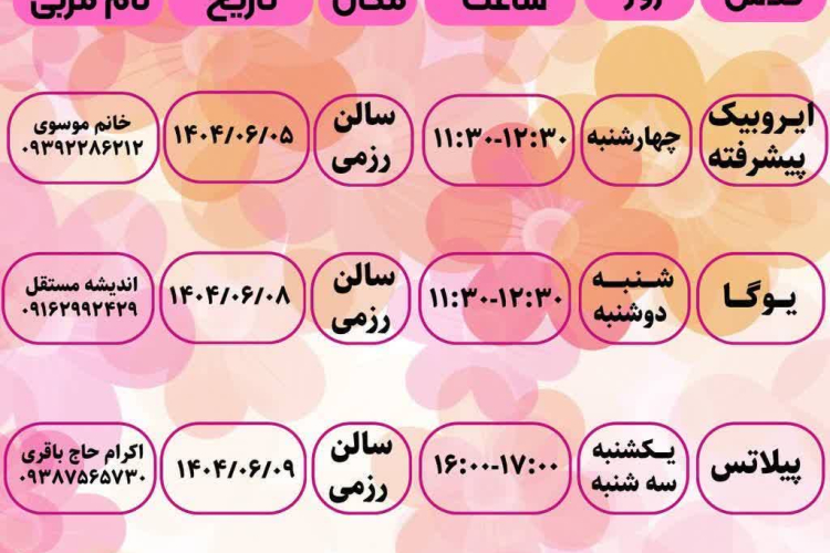 کلاس های پاییزه اعضای هیات عملی و کارکنان خانم