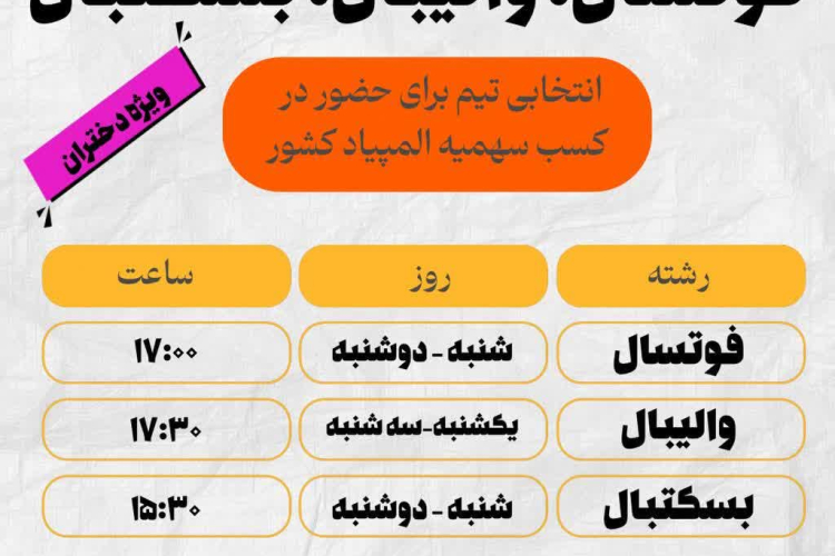 آغاز تمرینات تیم های فوتسال ، والیبال و بسکتبال دانشجویان دختر
