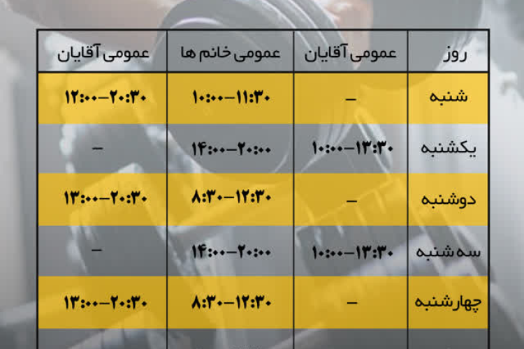 برنامه سالن بدنسازی مرکز تربیت بدنی